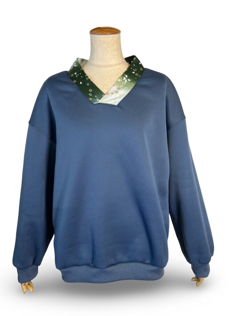 ブルーのトップスも。襟が着物っぽい感じに。さ!!明日はちゃんときてね!