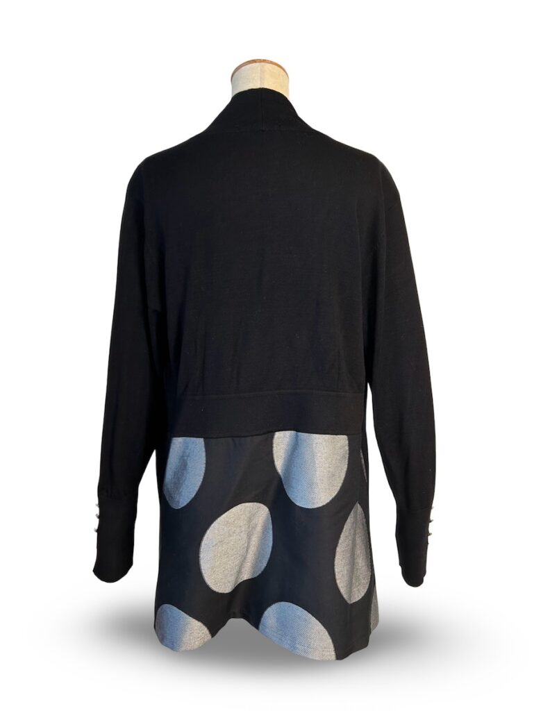 後ろは、短めなカーディガンを着て、その下が水玉みたいなデザインになっています。