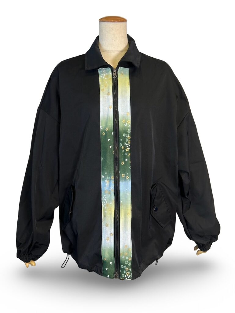 前は、縦。後ろは横なブルゾンです。雨が降っても大丈夫そうな素材です。