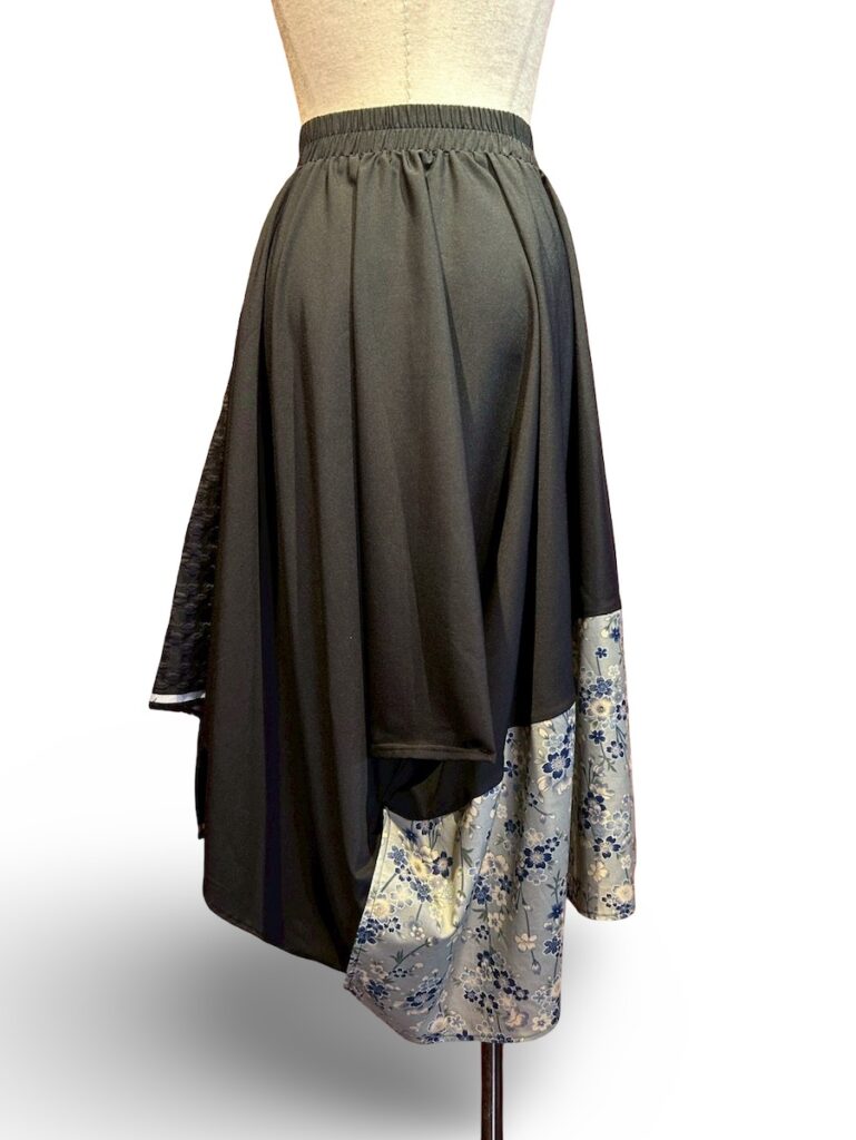 段々で重ねたスカート。しっかりとアシンメトリーです。