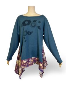ケープみたいに切変えを入れてそこにふりふりっとさせたシャツ。左脇に今回の生地を切り替えて。