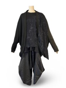 前が短くて後ろが長い羽織。今回はニットになっております。