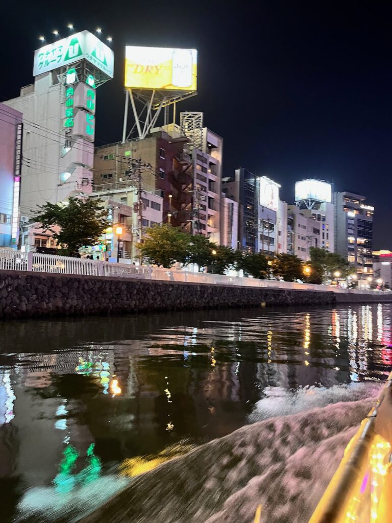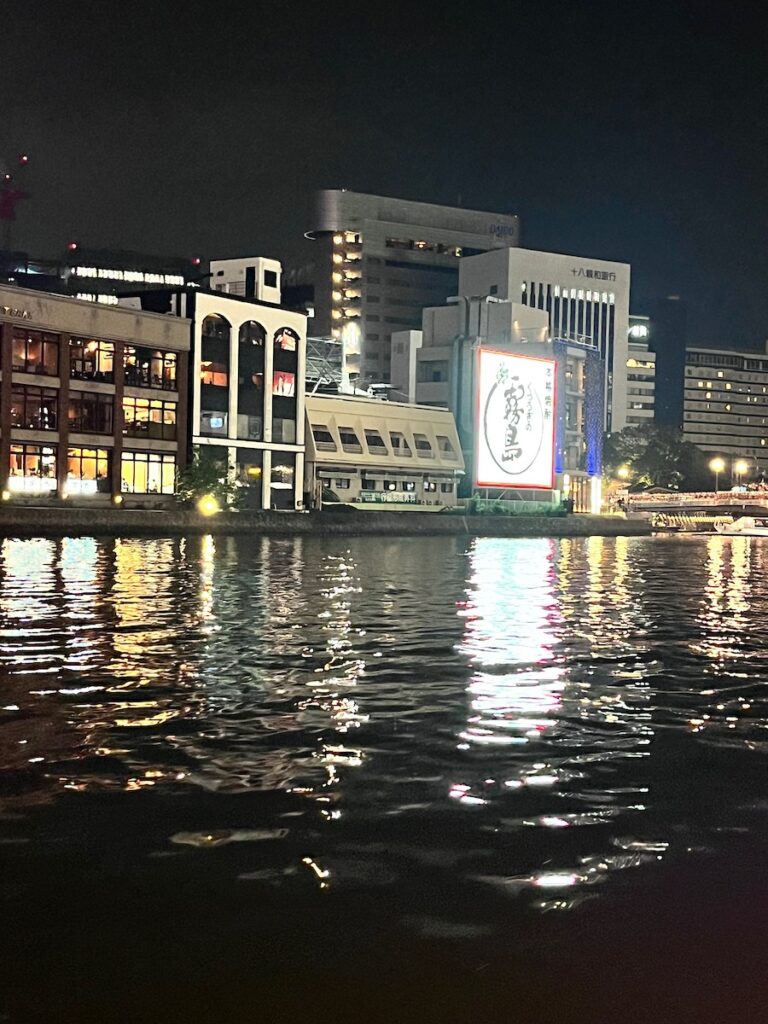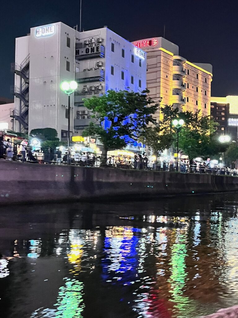 中洲の川っぷちにある屋台には人がたくさん!!ぼったくりに会わないようにね〜〜