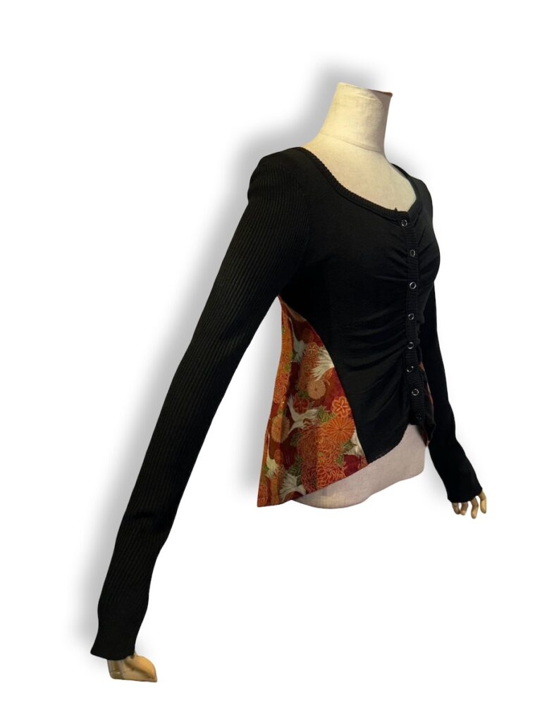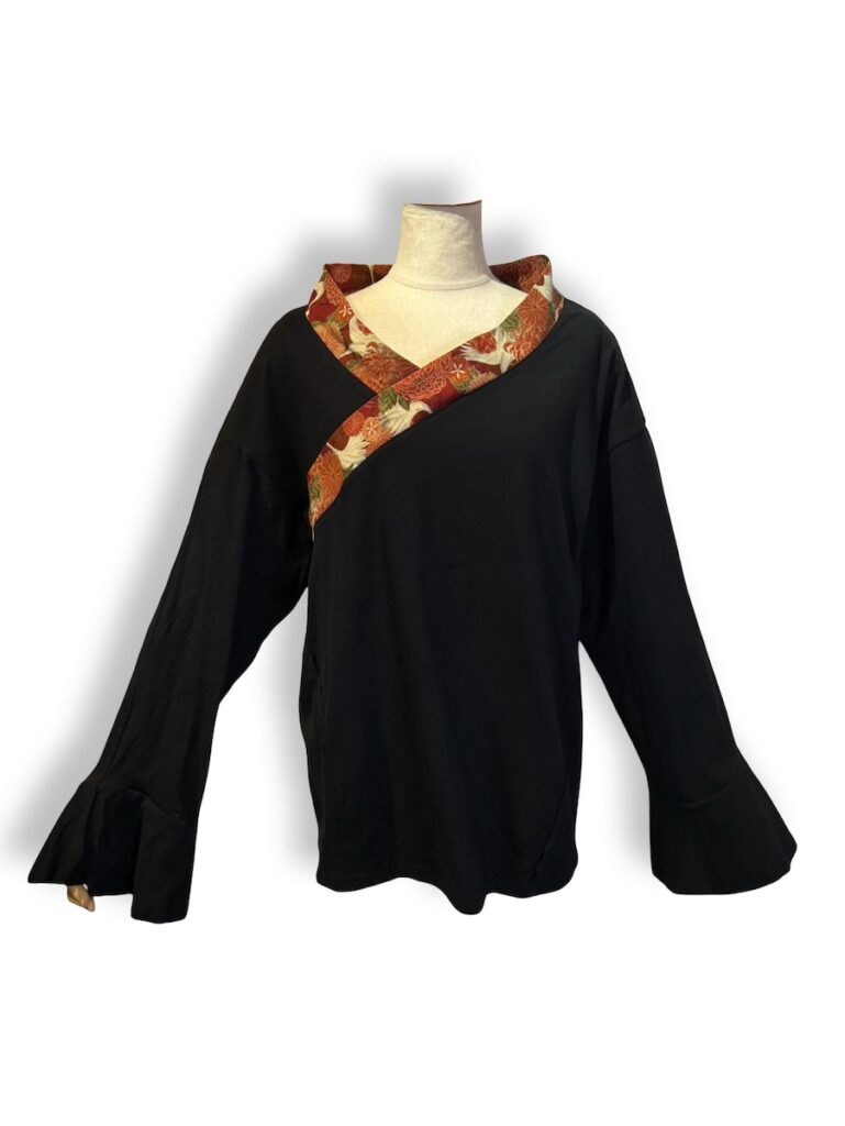 袖口がひらひらとするトップス。それの着物襟バージョン。