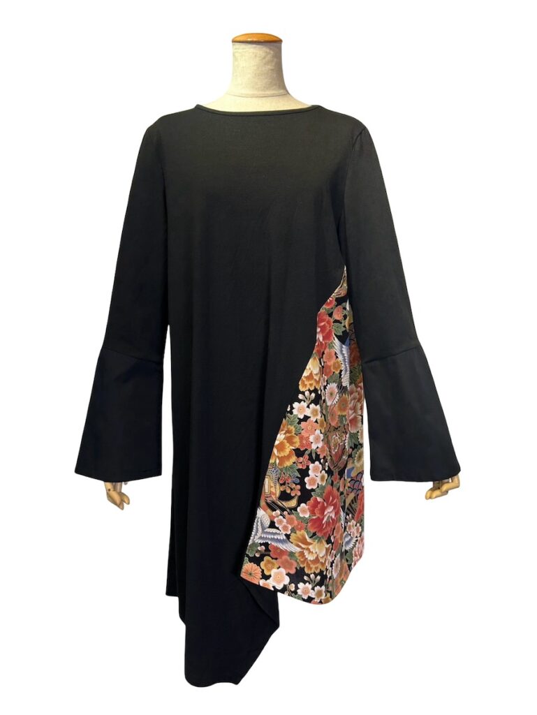 アシンメトリーヘムなロングトップスも作ってみたよ。袖口の広がりも意識してみました。