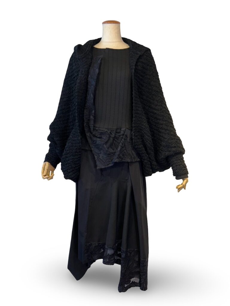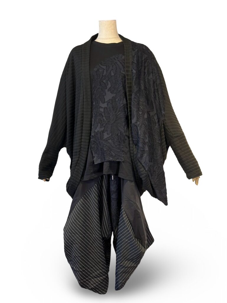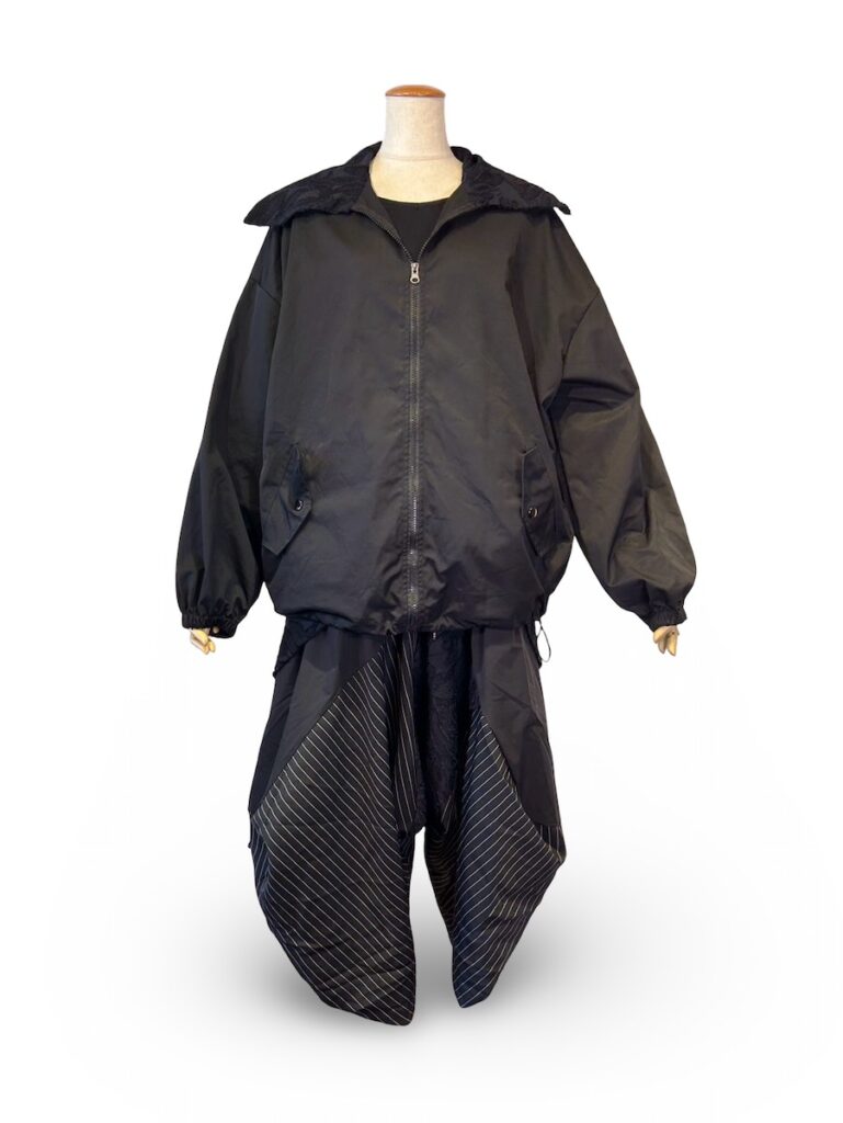 とにかく、黒だけを使ったモードな感じのシルエットに。