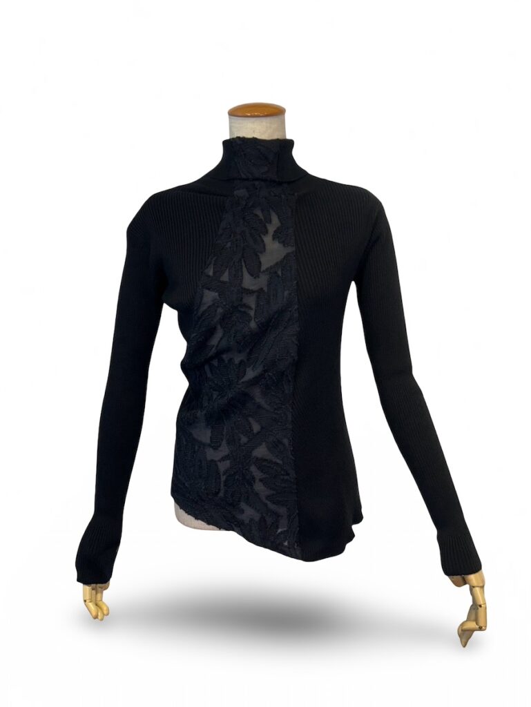 中に着るものが透けるタートルニット。下に着る物で変わりますよね。