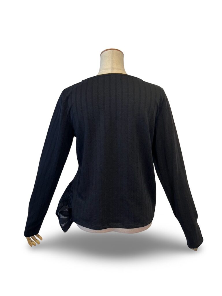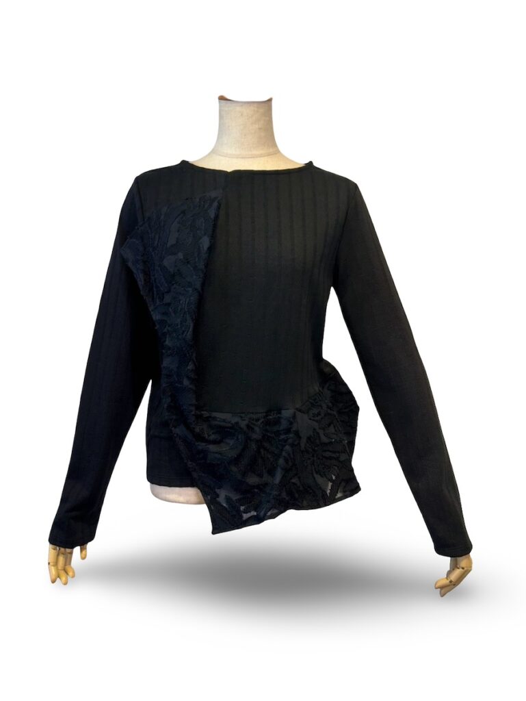花のような葉っぱのような柄が透けている感じですがジャガードで柄の先がぽさぽさしております。
