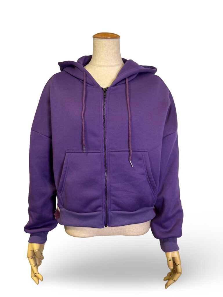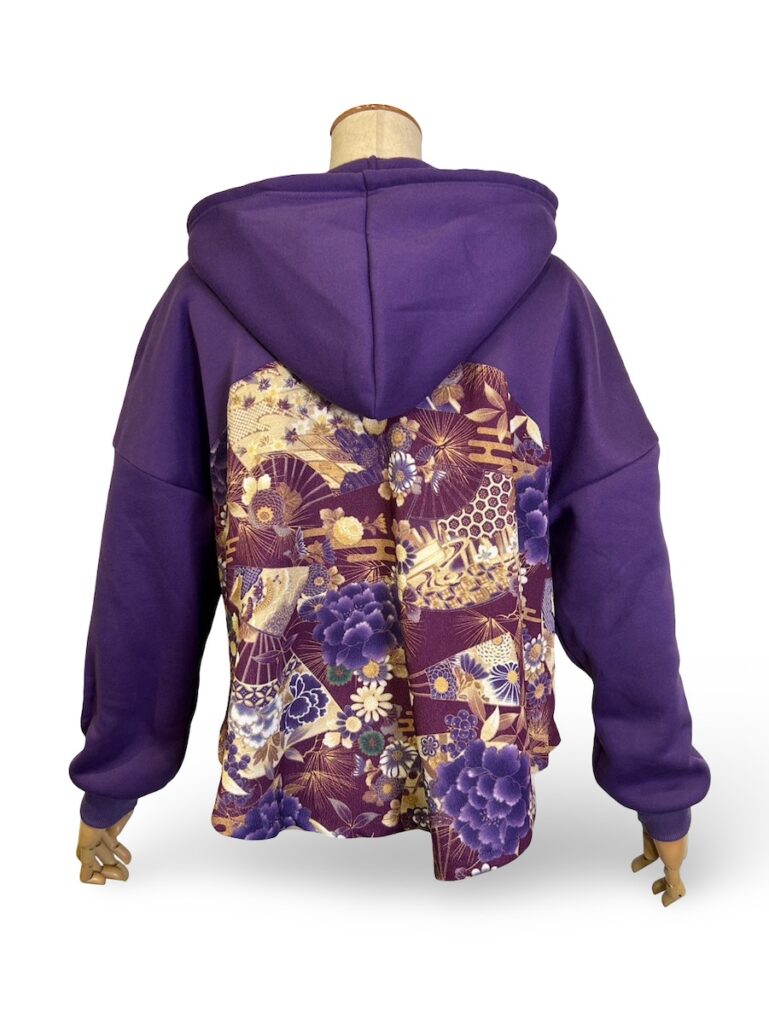 紫のパーカーも作っちゃいました。裏が起毛のあったかいこ。