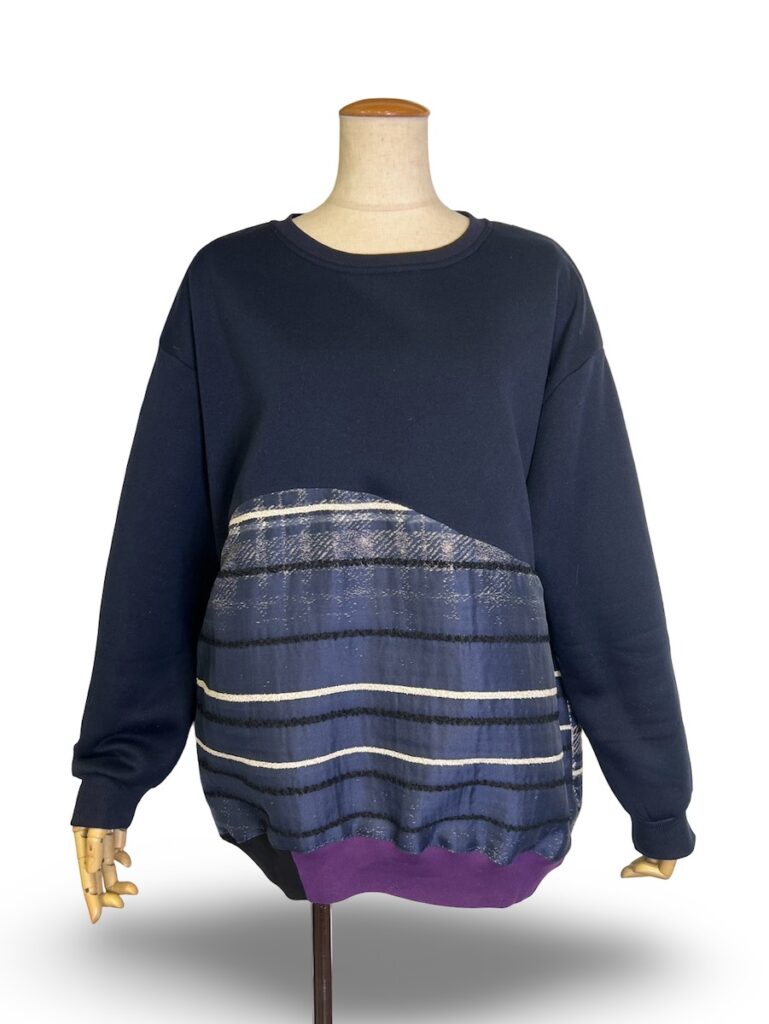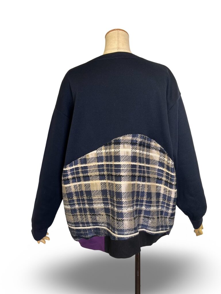 トレーナーも作ってみたよ。裾のところがチェックになっていて合わせやすでしょ??