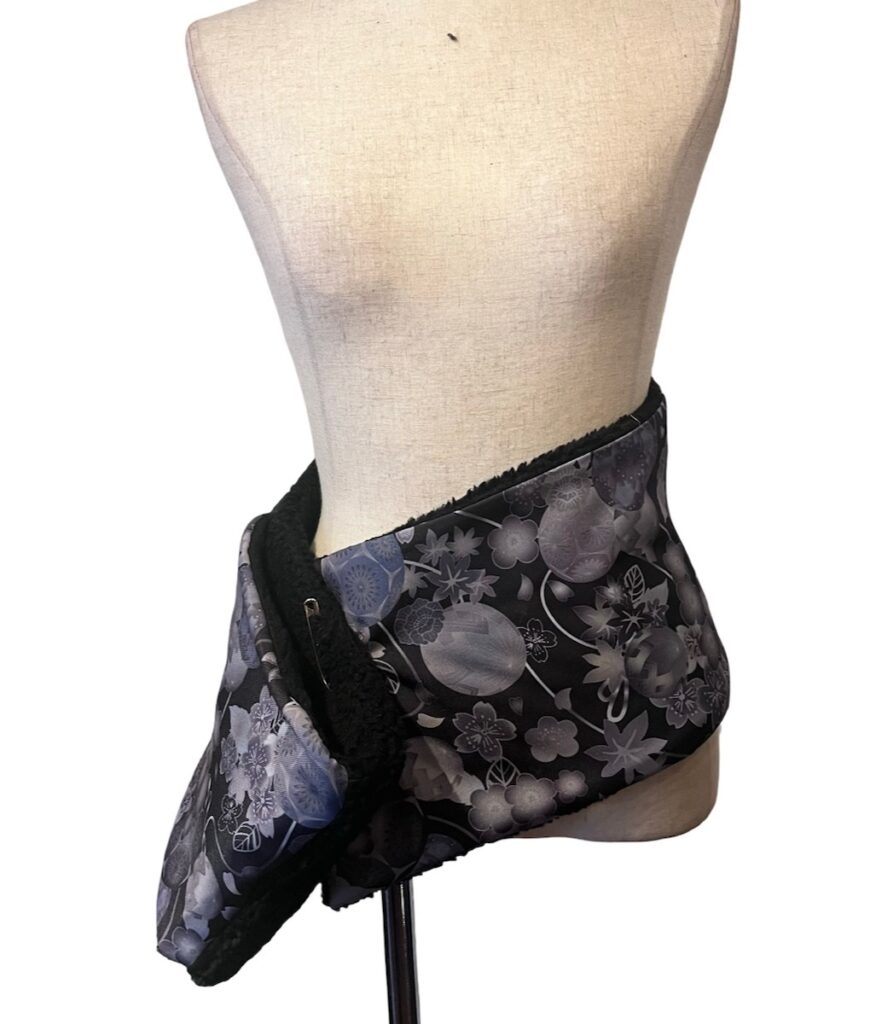 腰に巻いても暖かいよね。そしてアクセントになりますよね。帯みたいに。