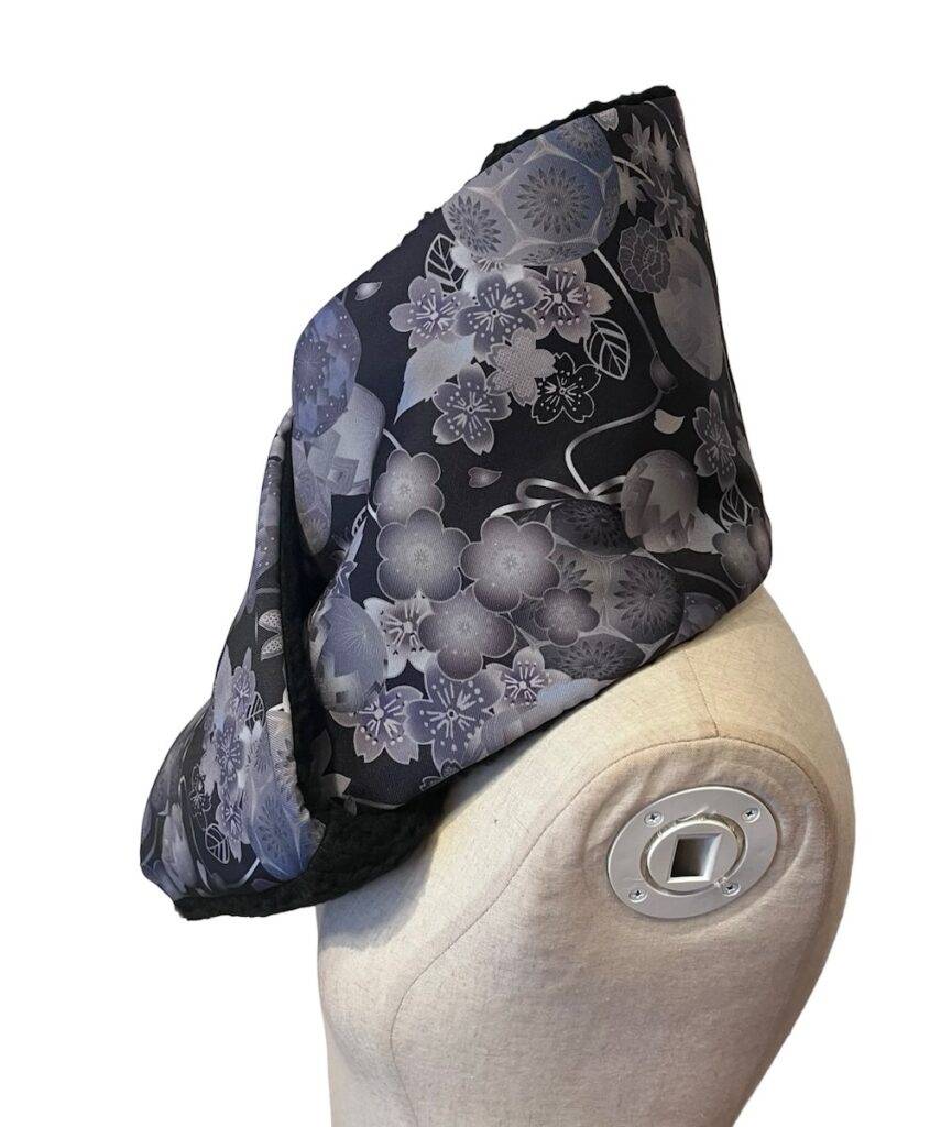 裏がボアになっているネックウォーマーを作ります。端っこの輪っかに通して首元に巻くのです。