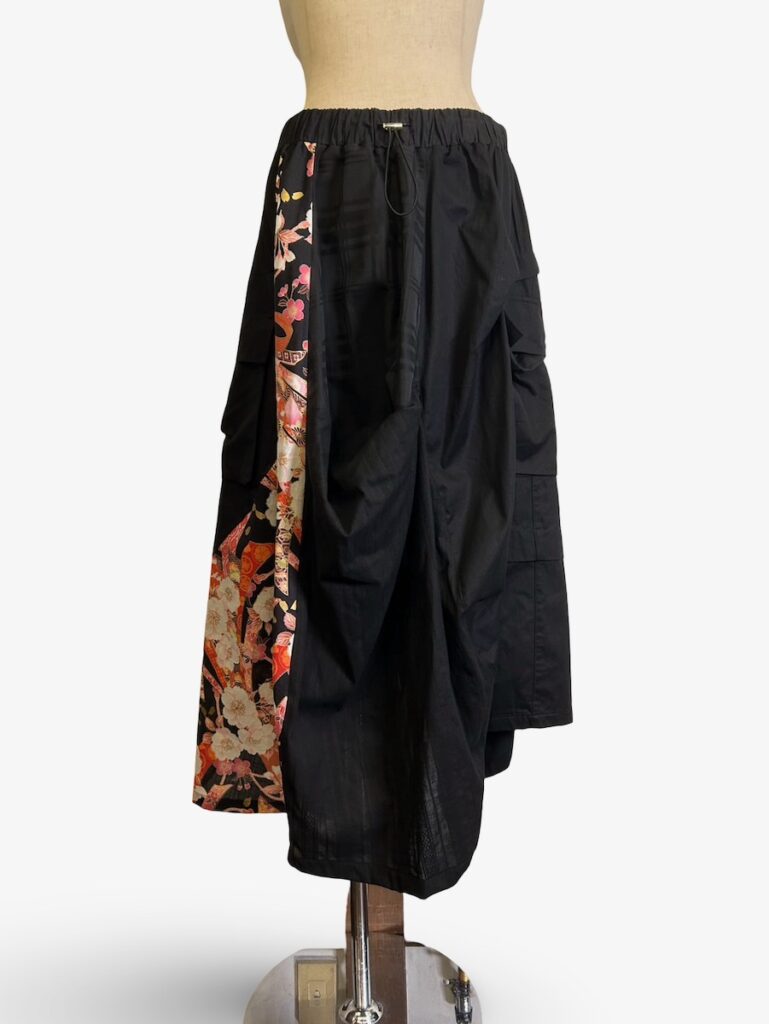 タックとか入れて不思議なラインにしたスカート。ウエストはひもでキュッとできますよ!ラフォーレにおります〜〜!!