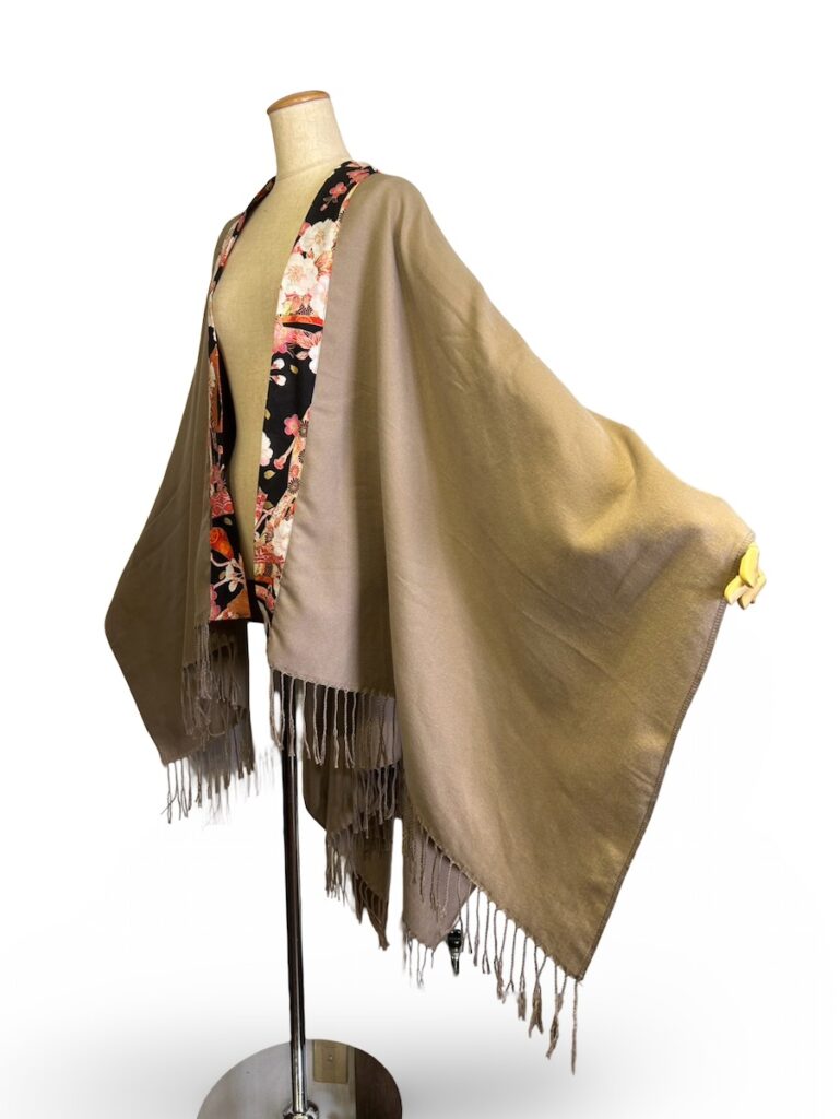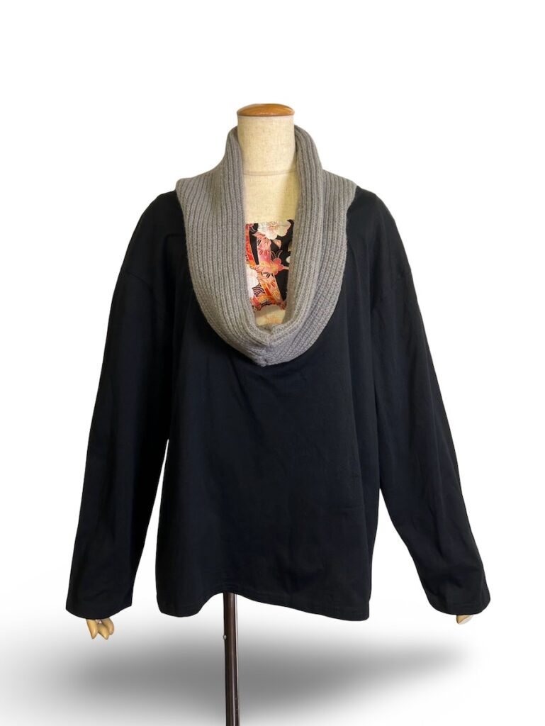 襟元が暖かな感じのトップス。これも人気なんですよね。内側に和柄がちらりとね。