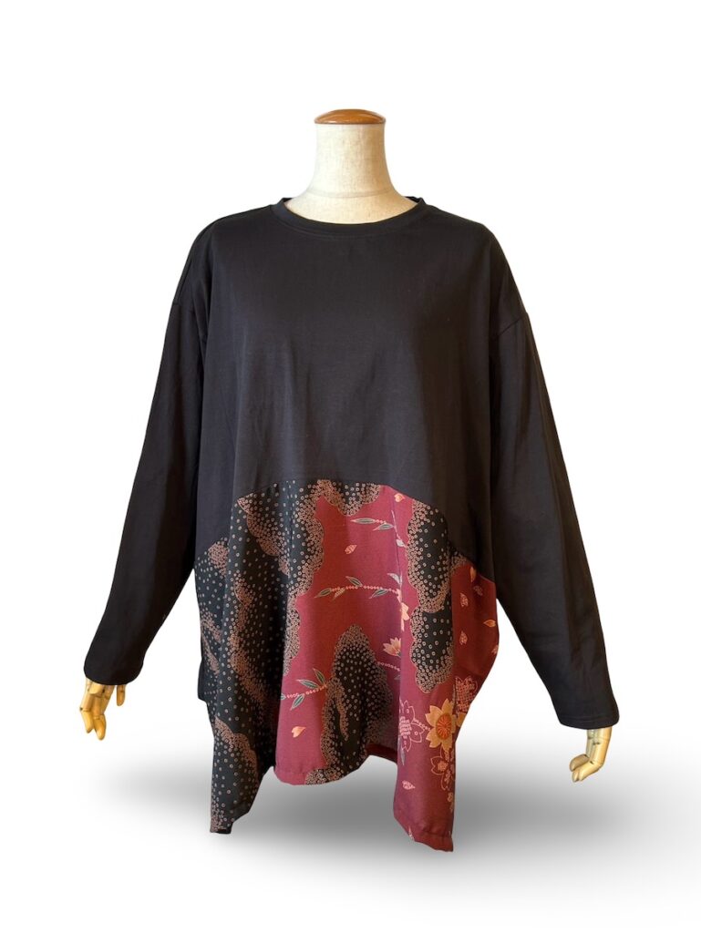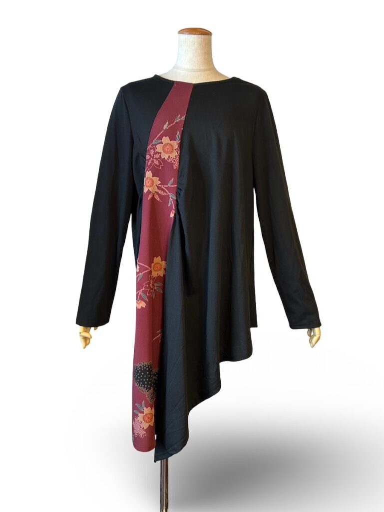 古い着物を使ったシリーズね。これは、僕の誕生日パーティの日の前日かたアトリエに並びます。アシンメトリーヘムのワンピース。