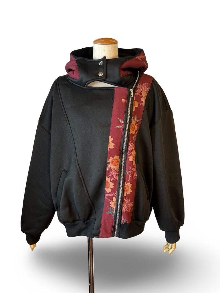 ハイネックのパーカー。やはり着物は素敵よね。