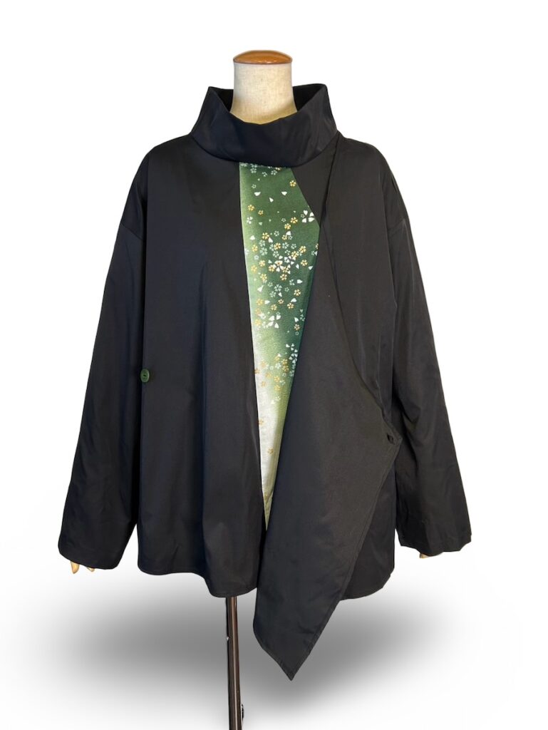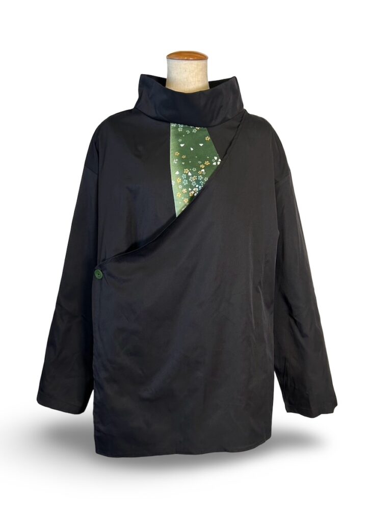前見頃のボタンを留めるとこんな感じです。イメージが変わるでしょ??