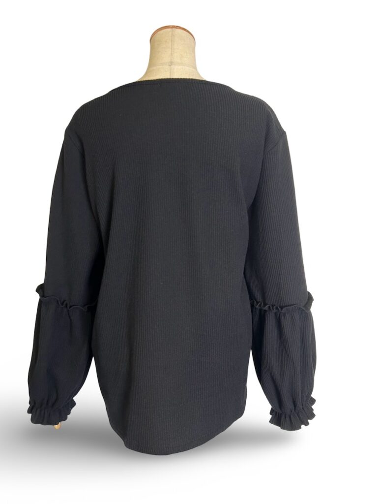 後ろから見ると袖の切り替えが目立ちますよ〜〜フワッとランタンみたいな感じで。
