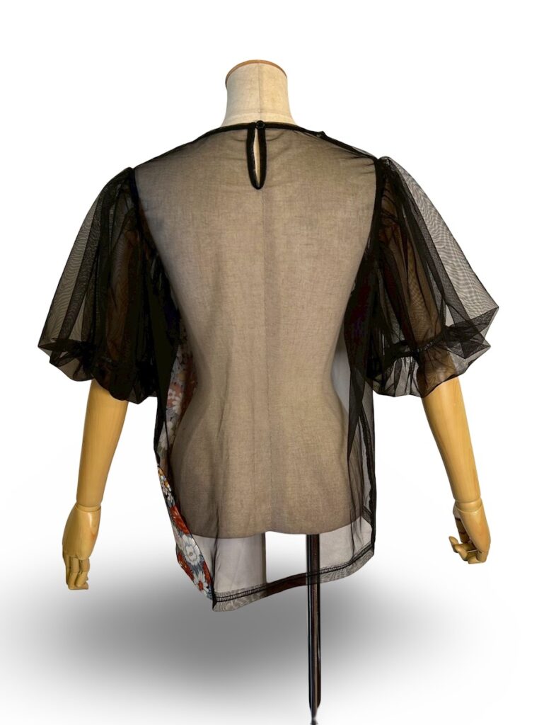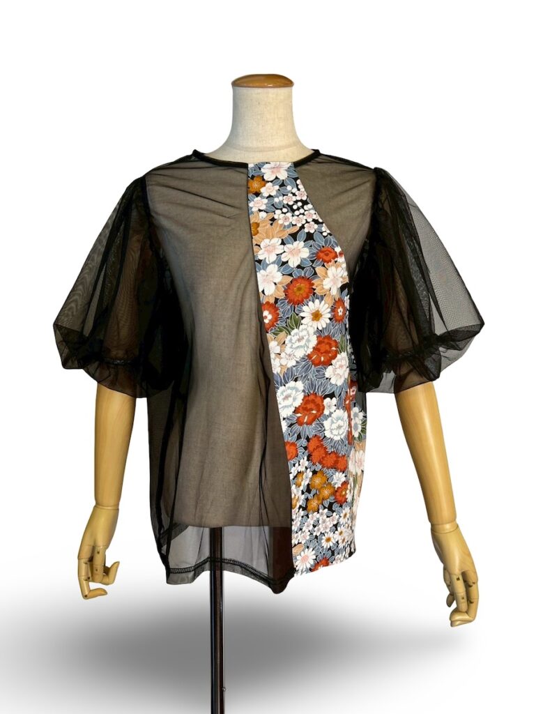 こちらの商品は、8日からの聖蹟桜ヶ丘のポップアップで発売します。透けてて袖がバルーンになっているのです。