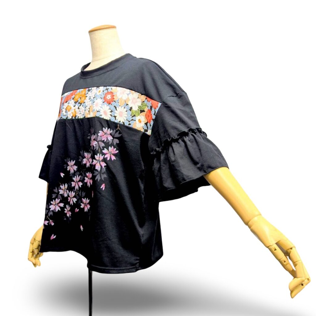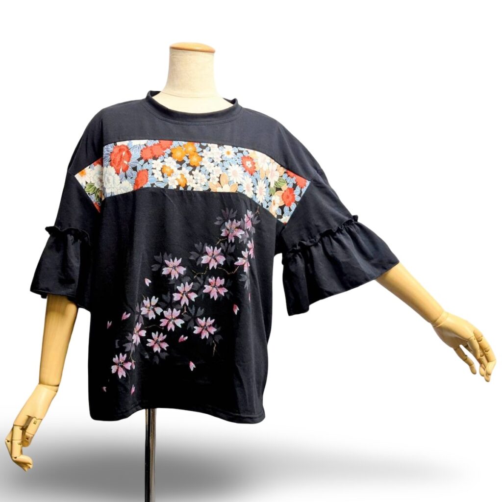 袖がふりふりとしたトップスです。これはピンクの桜が入っていますね。