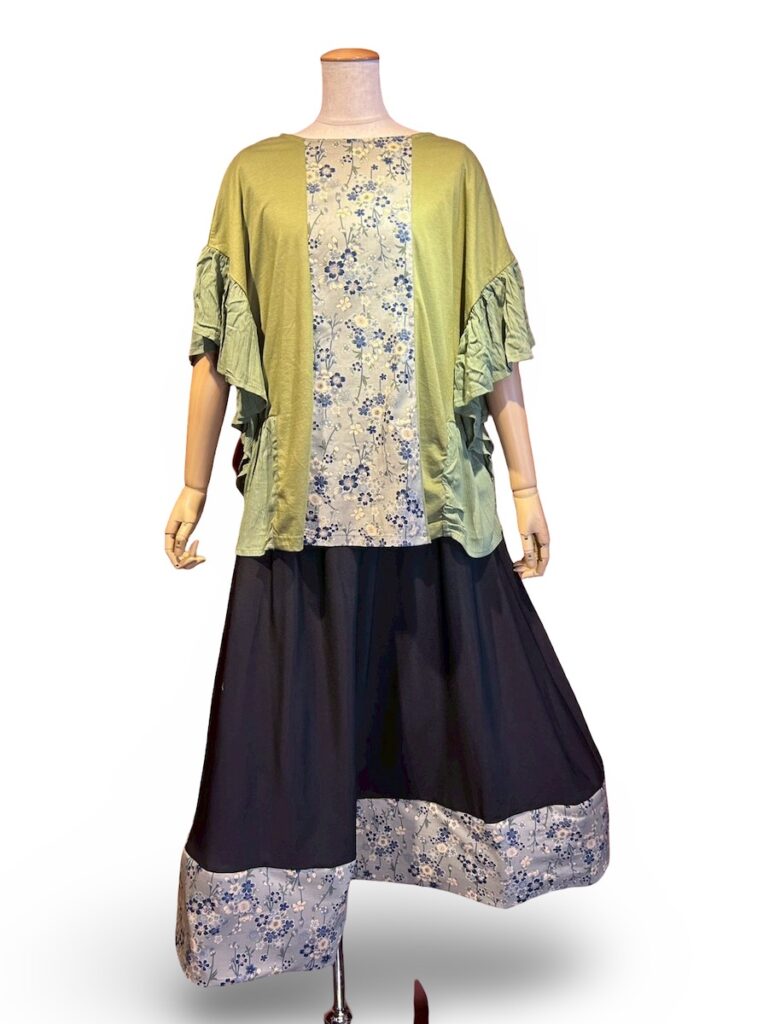 こちらの商品は、4月のウェブショップで発売します。裾に個性を持たせて見たのですよね。