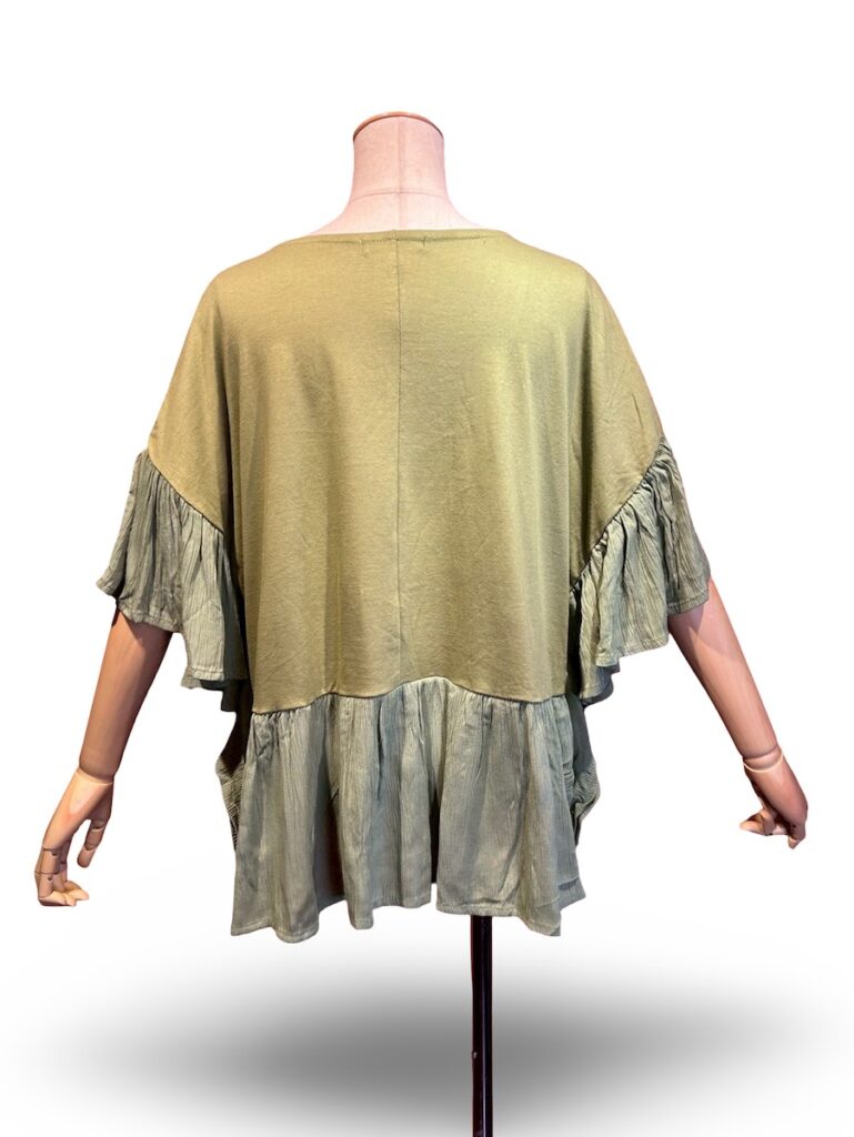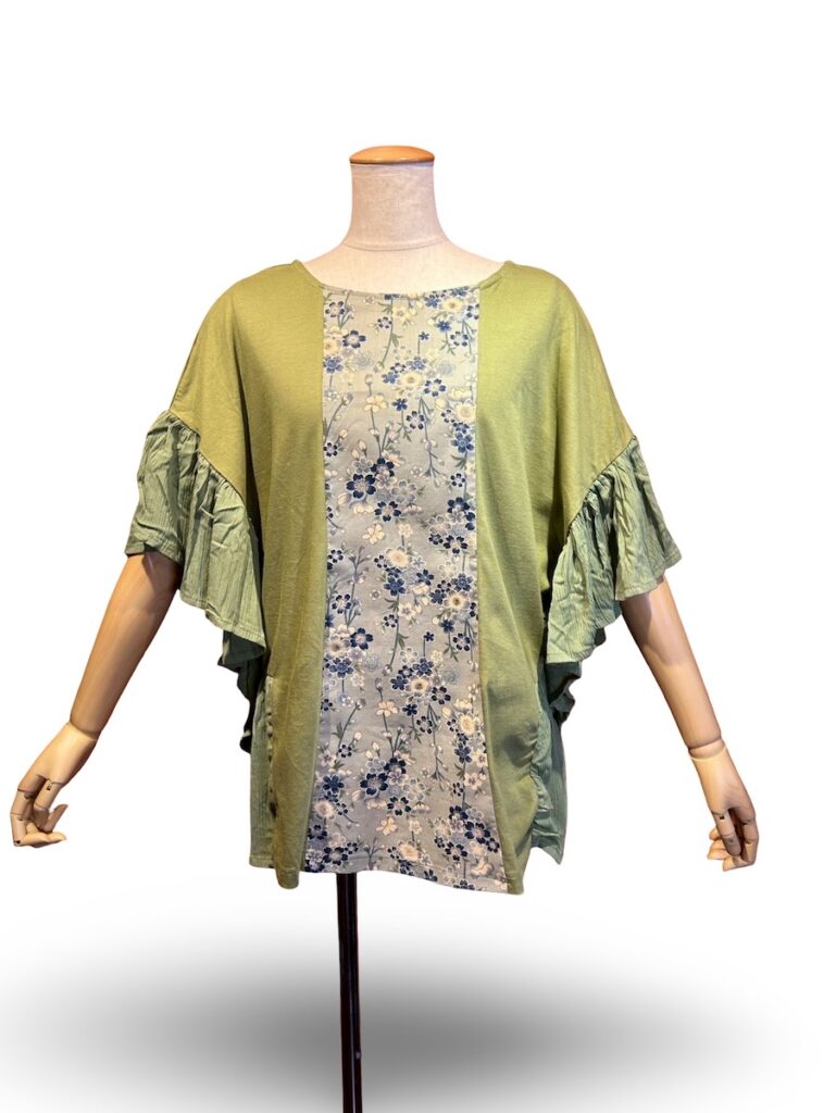 袖がふりふりっとしたトップス珍しい黄緑色。
