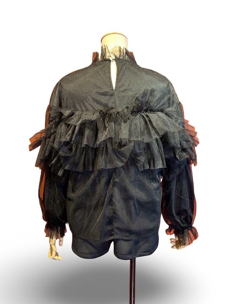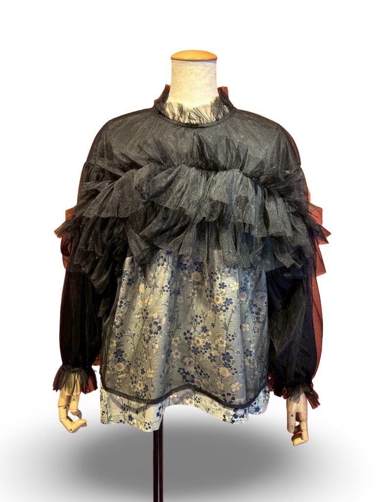 4月のウェブショップの商品ですが、ふりふりをたくさんつけたようなトップス。透ける感じで和柄が見えます。