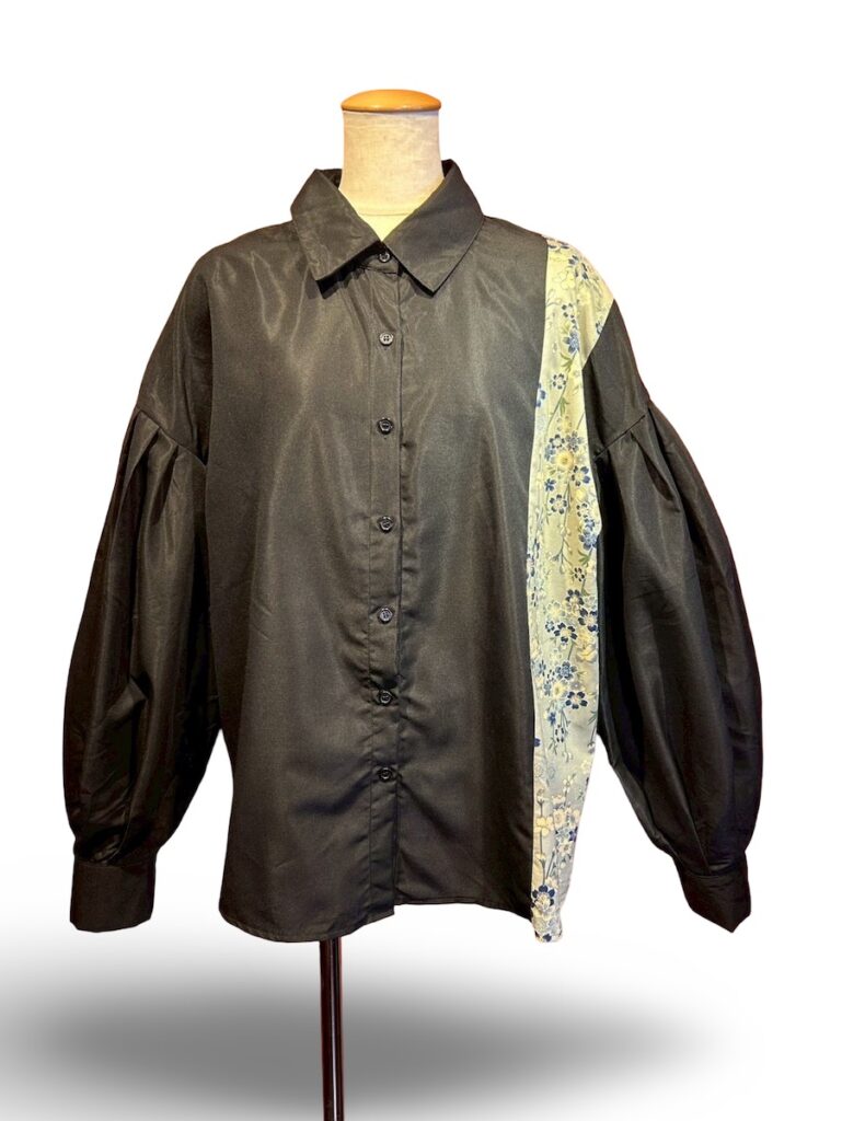 フワッとした袖口がポイントのシャツ。左脇に和柄です。