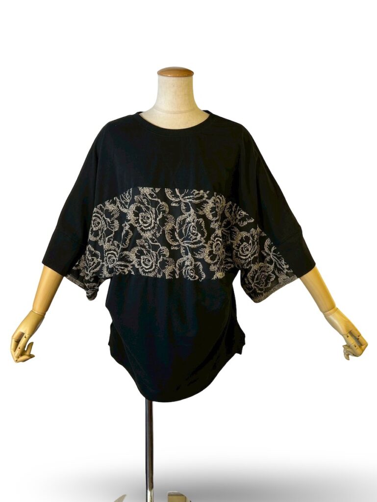 前に大きめに花柄のトップス。これ、袖口が広いので涼しいですよ〜