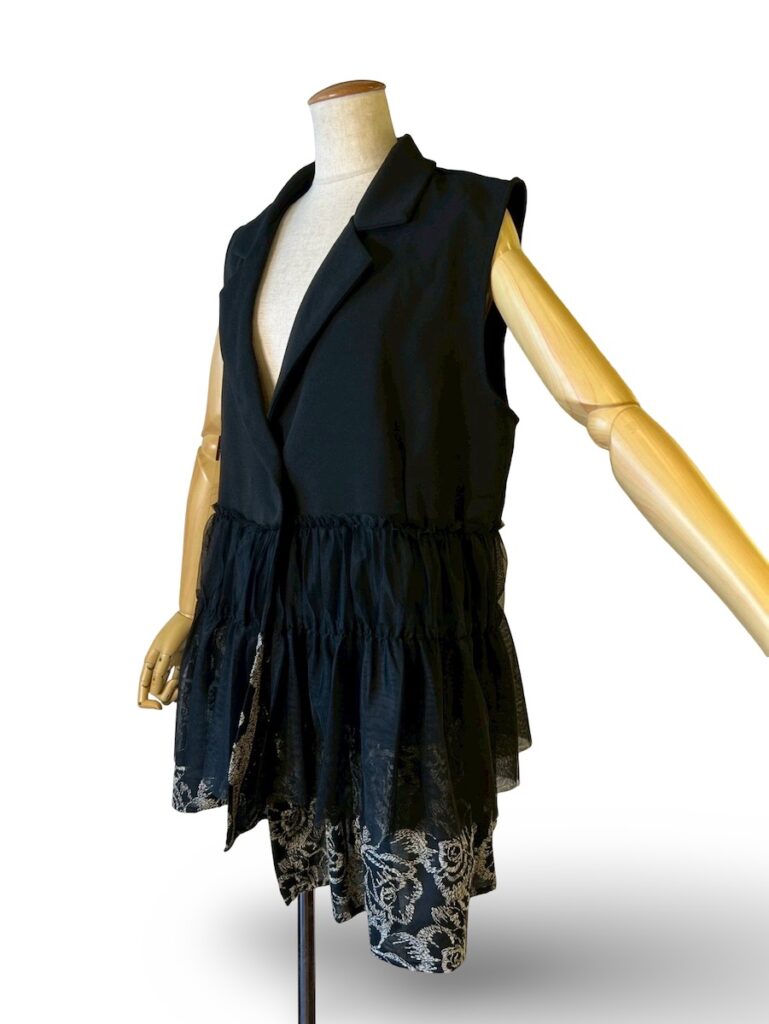 ちょっとベストなものも作って見ましたよ。裾に今回の生地を切り替えててそしてその上にチュールで透ける感じのもの。