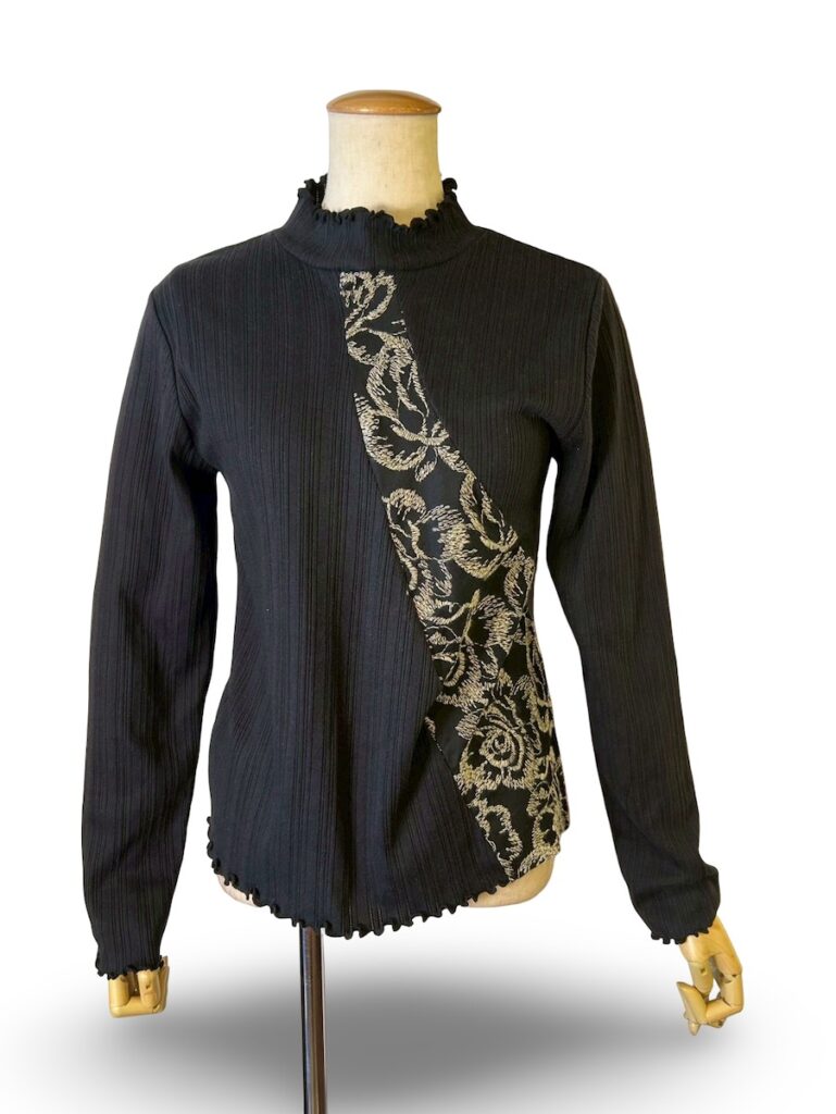プリーツ加工したような素材のハイネック。夏でも長袖!というお客様のために作りましたよ。