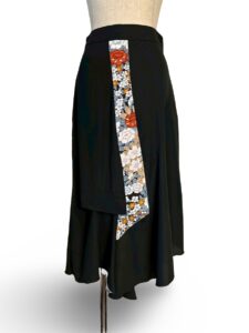 こちらは、スカート。裾に穴があいた生地を切り替えてあります。