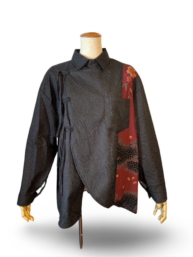 なので〜〜〜来てね。右のチャイナボタンがポイントのシャツです。