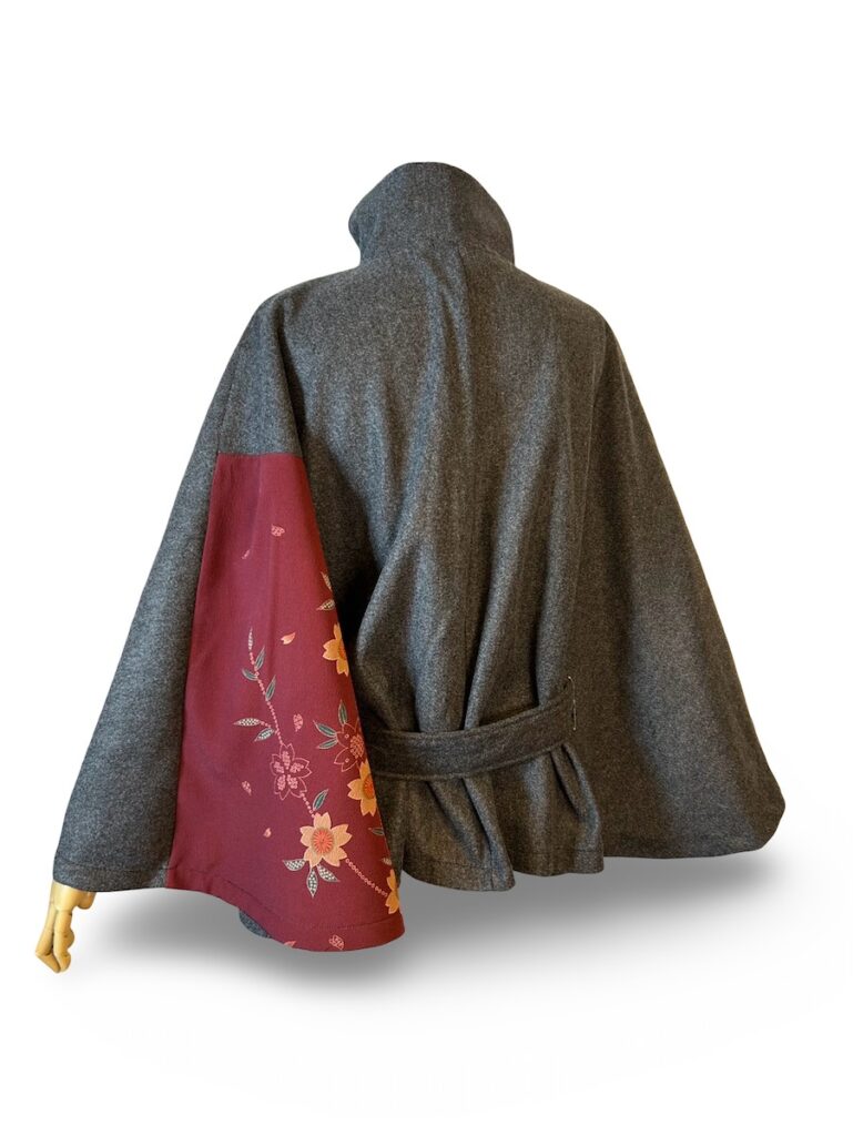 左右にひらひらっとなるパーカー。着物で作るとまた違った雰囲気でしょ?