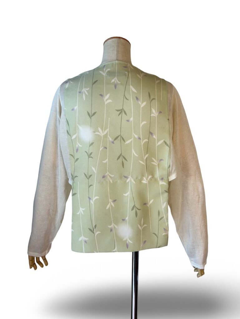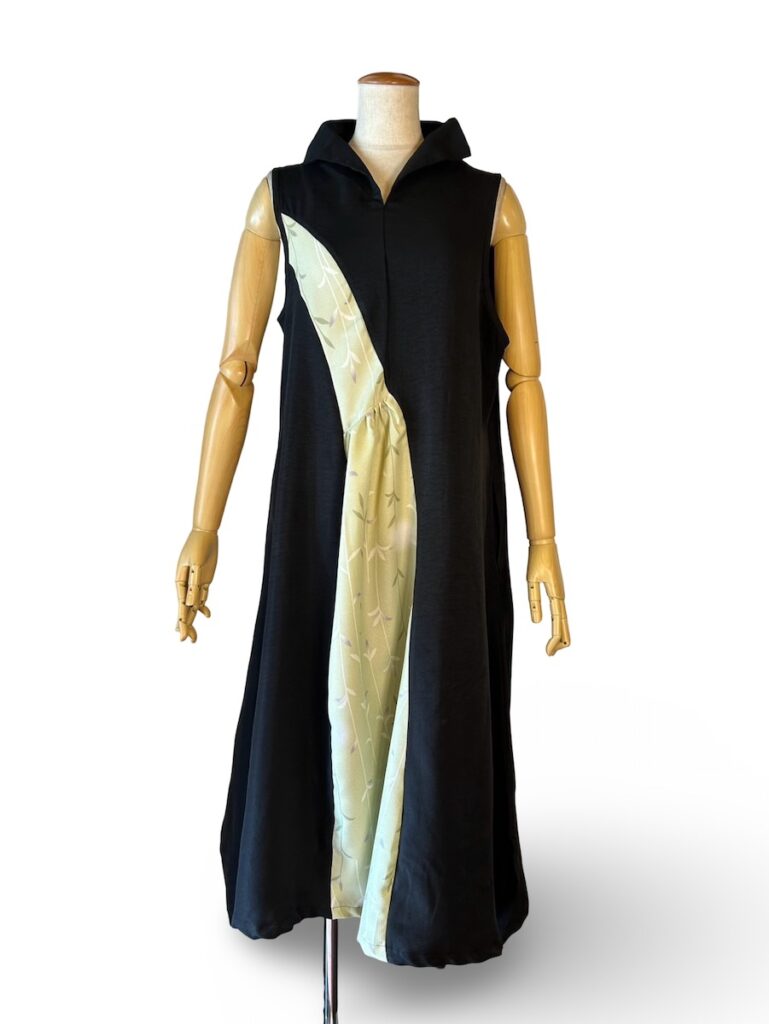 これは、襟にも使ったし、左側にも和柄も使ったし。カシュクールっぽい感じのトップスです。