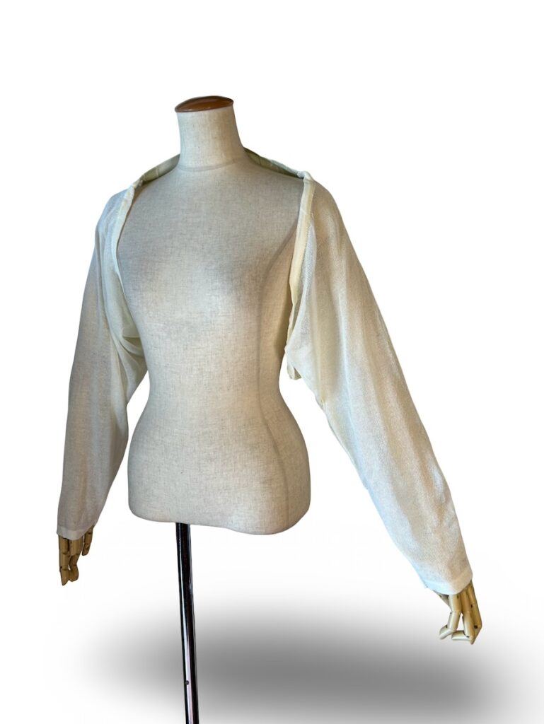 裾もキュッとしてくしゃくしゃってできるし、その切り替えをくしゃくしゃってしようってね。そんなトップス。